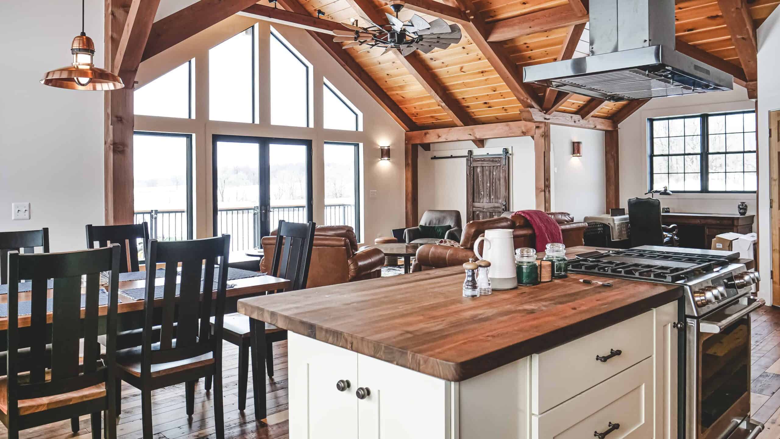 With this masterpiece, it is hard to highlight everything we love about this custom barn and home in a short summary! Imagine living in a luxurious space filled with the warmth of timber frame and light from every angle, only having to walk downstairs to check on your treasured horses! Every inch of this timber frame building was crafted with the utmost care to incorporate the owner’s vision and to provide the best living space possible for man and his horse alike.