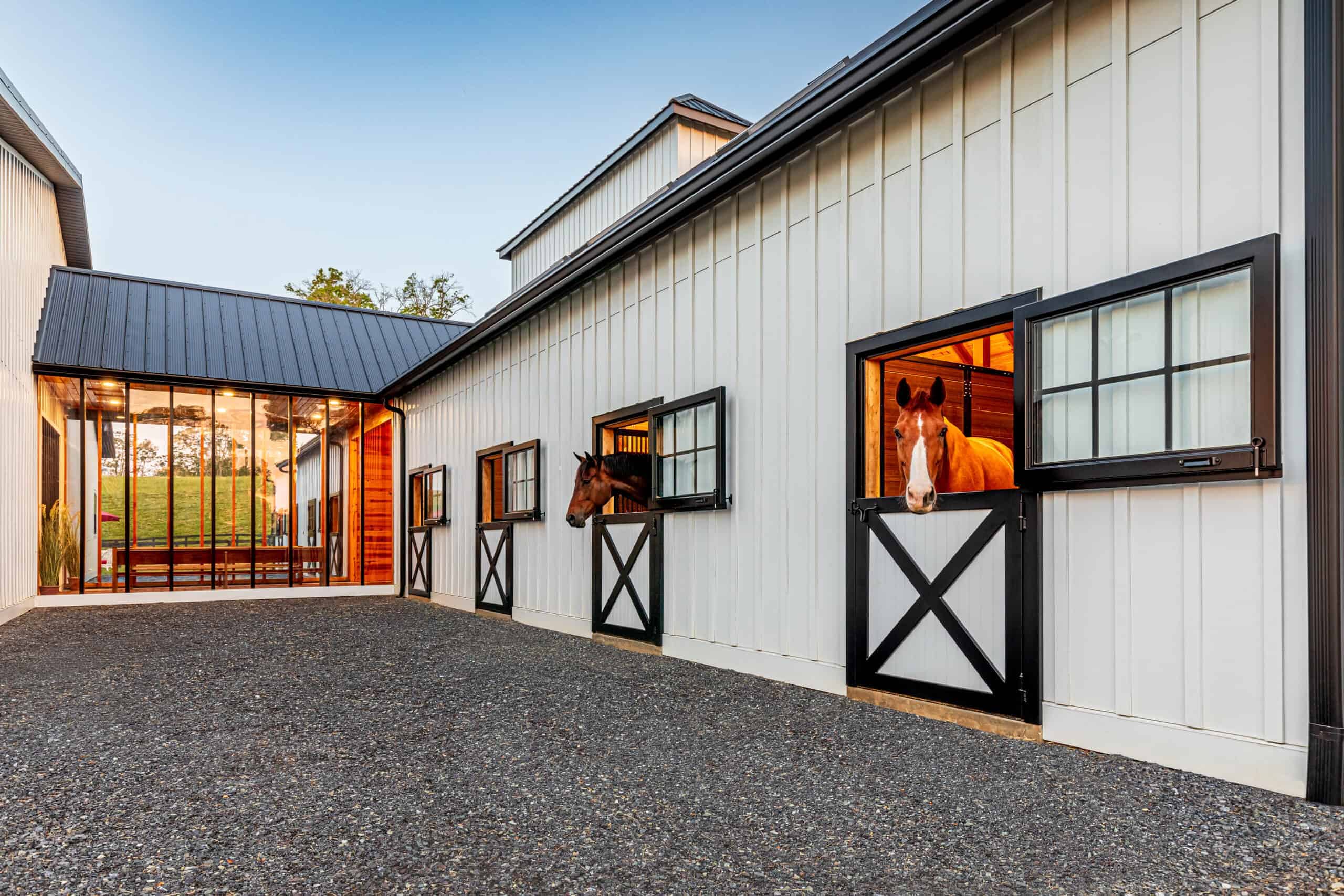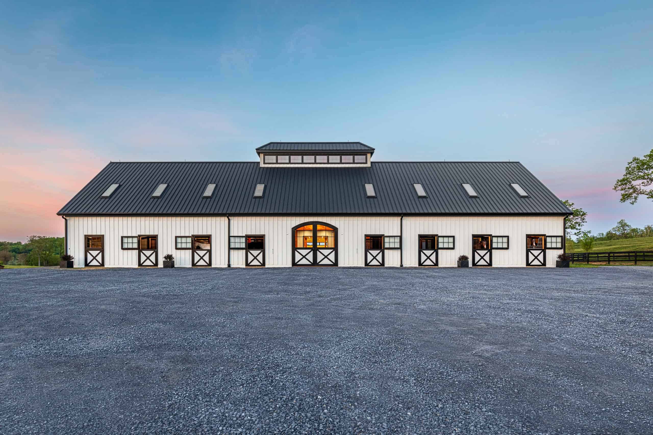 Our client spent years dreaming of this barn and riding arena. This training facility includes a 16 stall timber frame barn, service barn, & riding arena in Middleburg, VA.