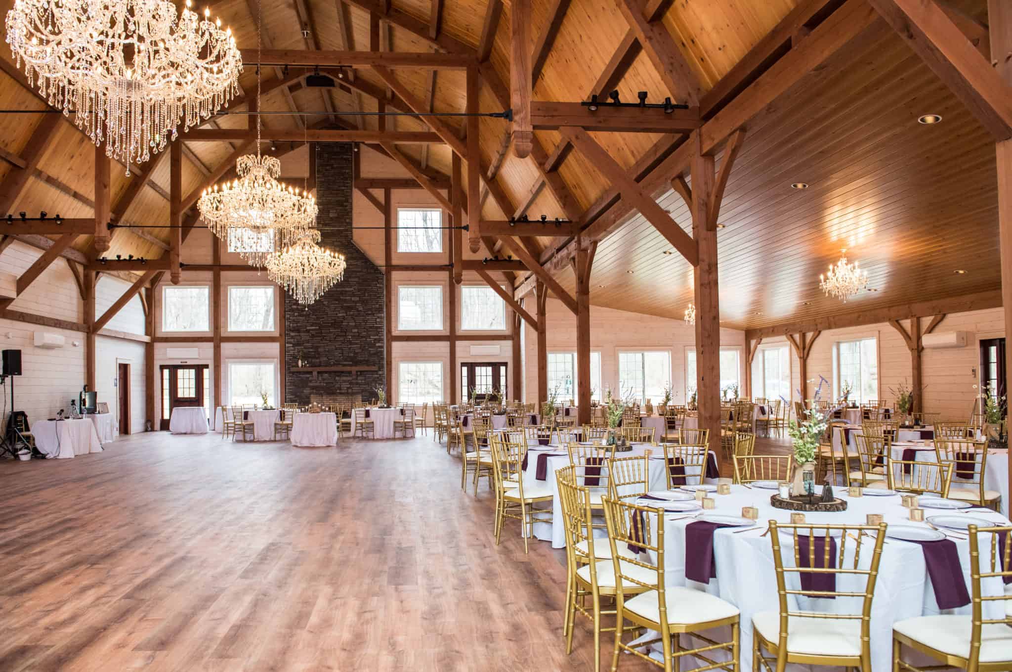 Because everything we build is custom tailored to each customer, we were able to design the timber frame wedding venue based off of the customer’s drawings to fit with the existing historic buildings on the property. The duct work & pipes were planned in such a way that none of the wood, hand cut by Amish craftsmen, would be hidden. Because of the sturdy timber frame build, this timber frame wedding venue will continue its historic tradition for generations to come.
