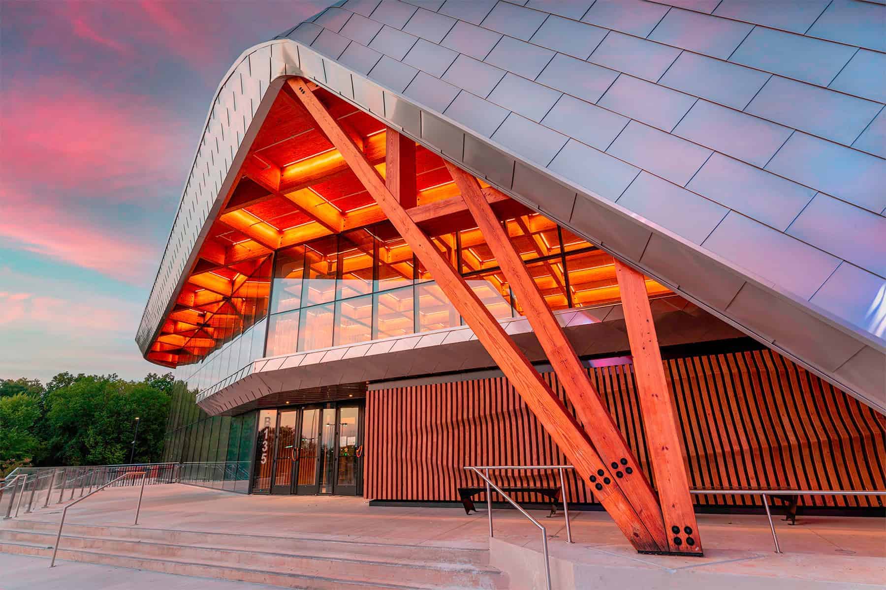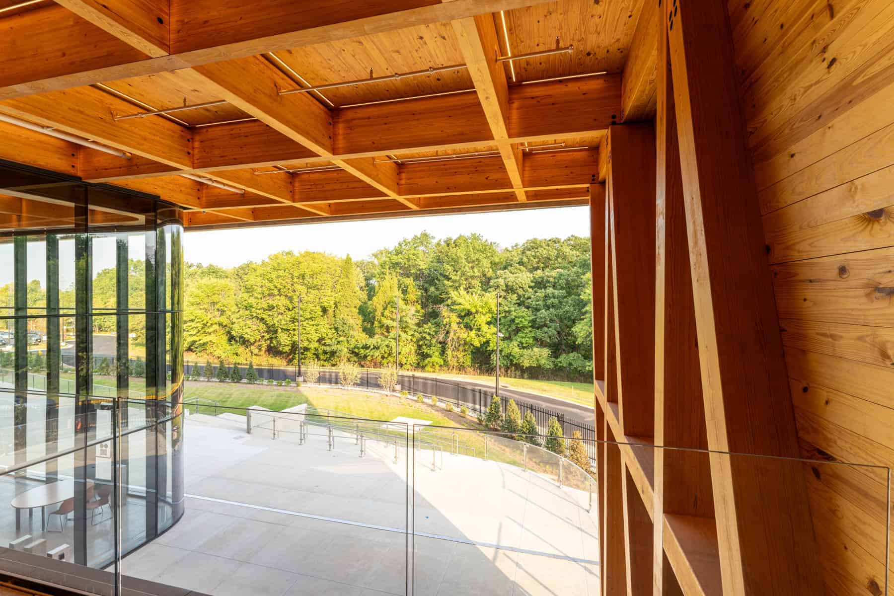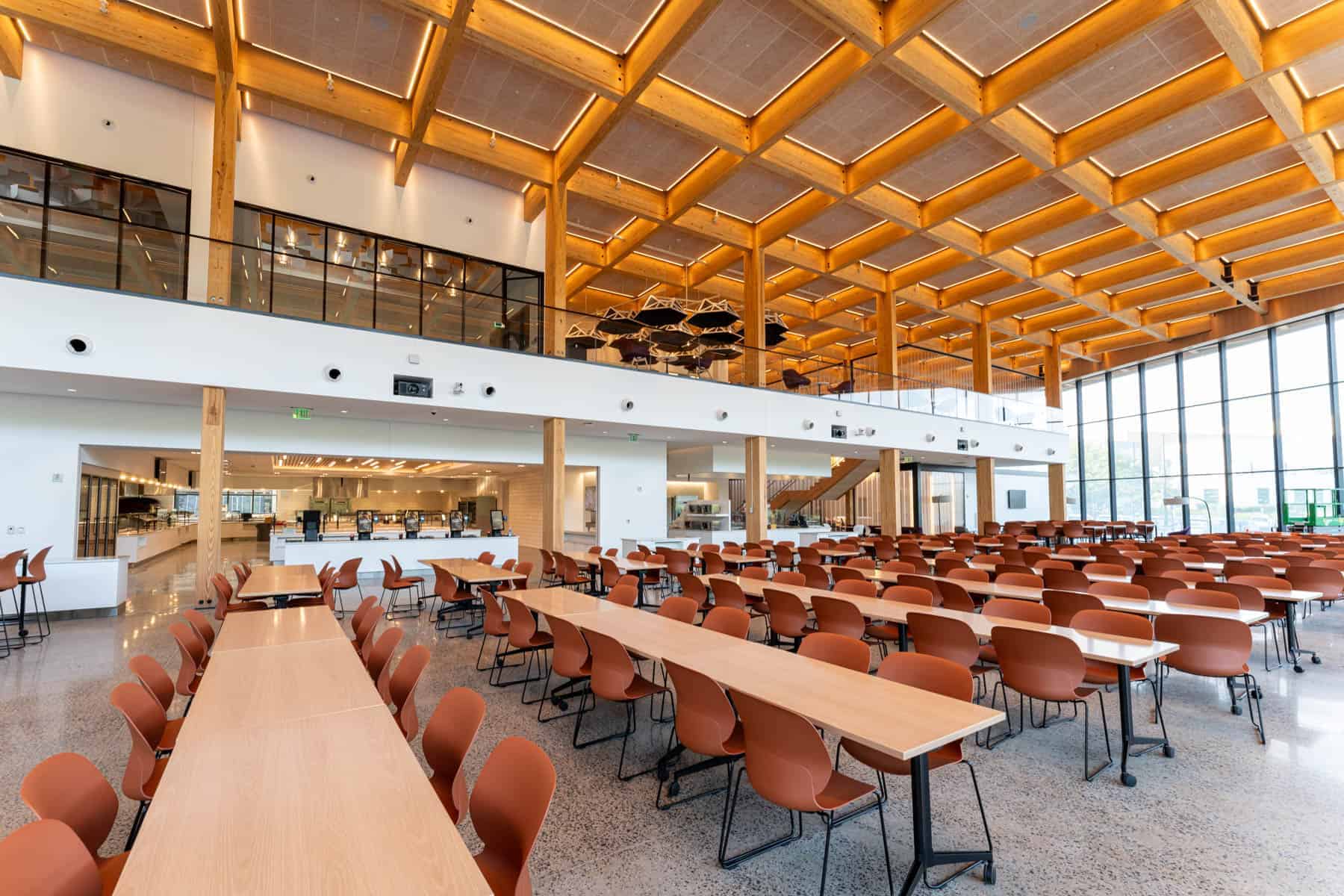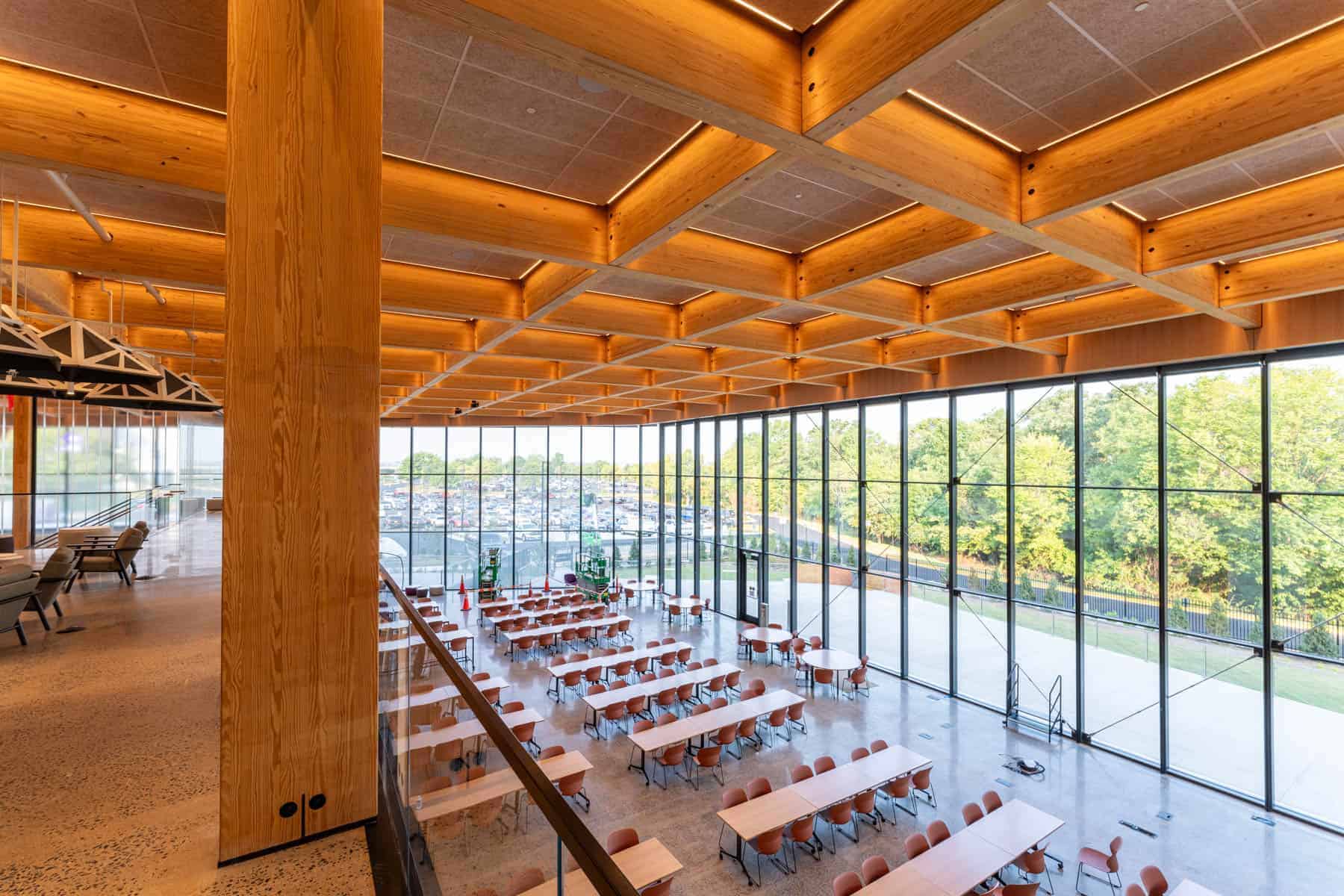Quarry View managed the erection of the mass timber frame for Micron’s Technology Building. This mass timber building houses the campus cafeteria and provides a calm and relaxing space for Micron employees to enjoy their break with ample natural light and the exposed timber ceiling.