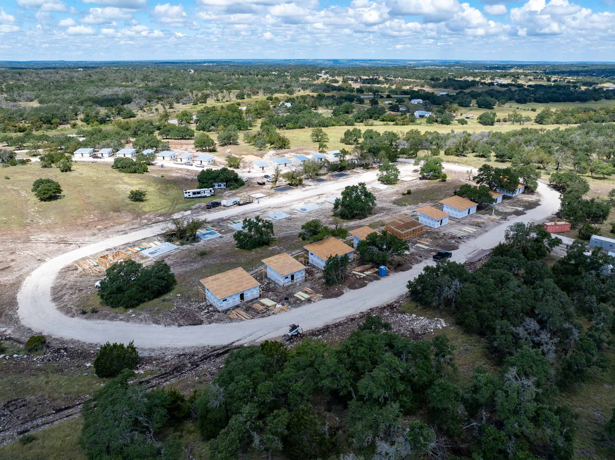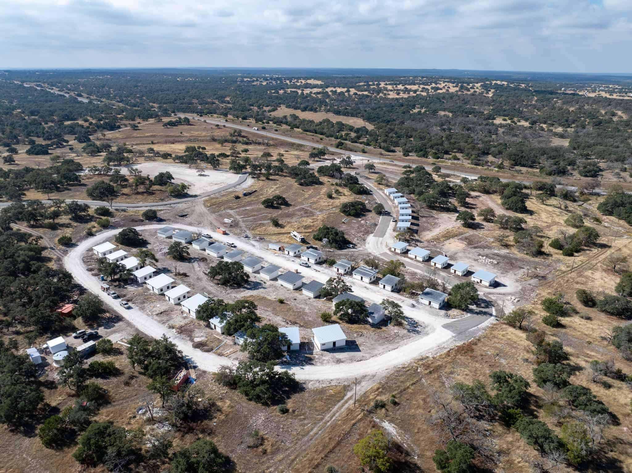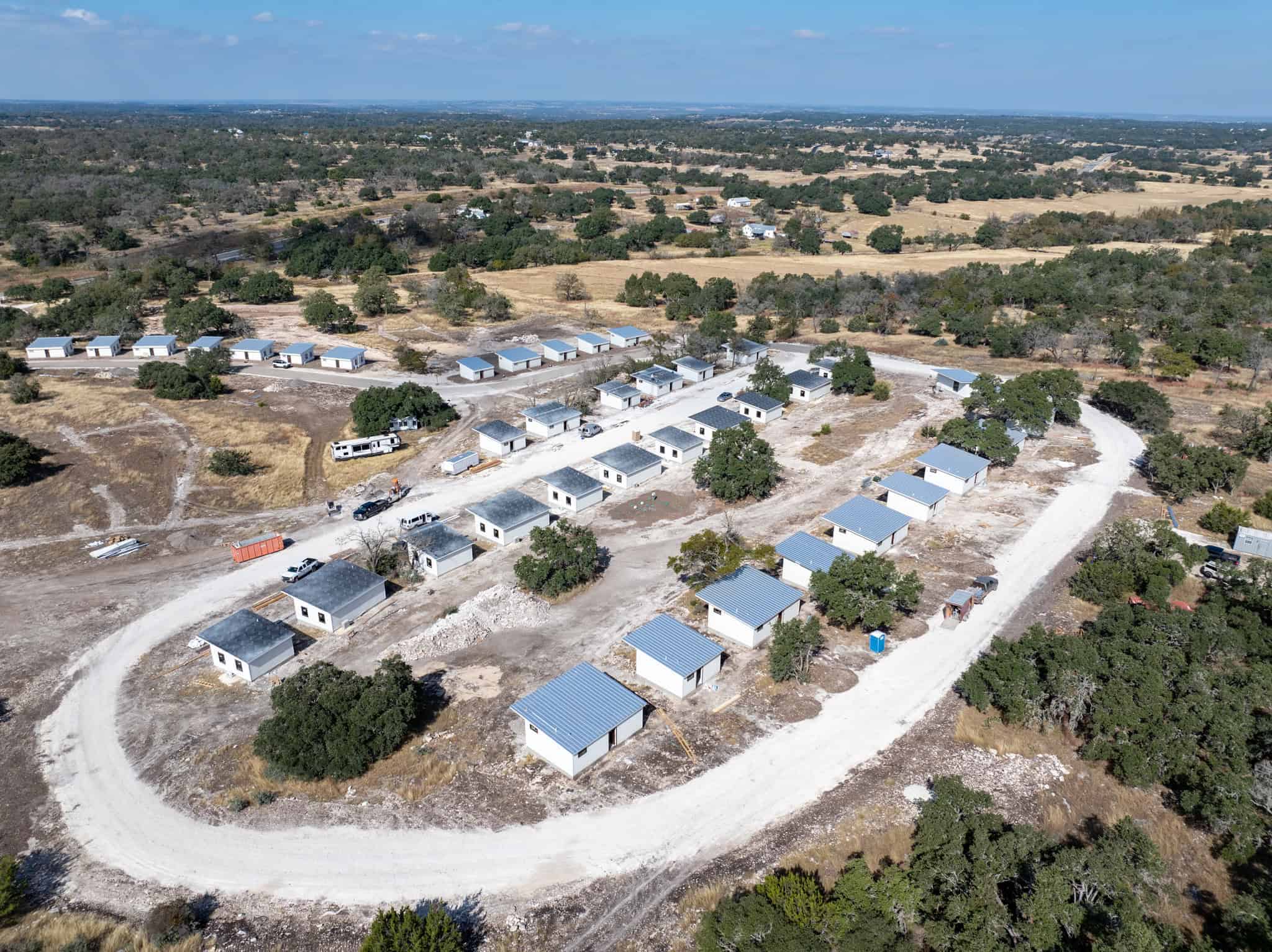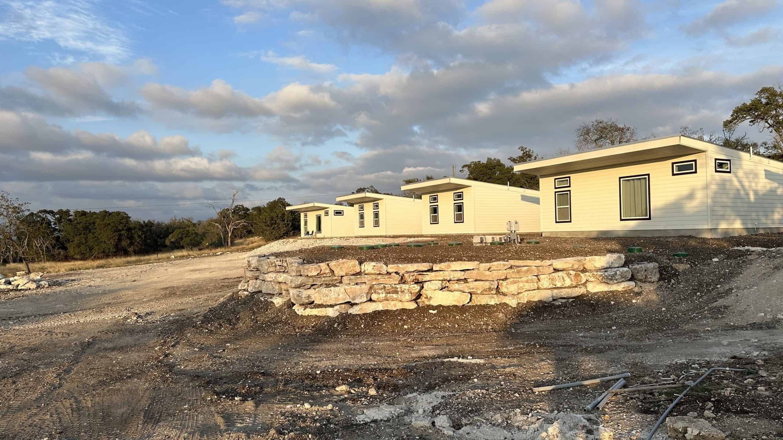 This commercial project encompasses 40 tiny homes, equating to over 20,000 sq ft of building space. Nestled in the heart of Texas wine-country, these homes on the hillside serve as a beautiful weekend getaway and convenient space for student lodging. As an alternative to building a multi-story dormitory or hotel with 60+ rooms, this design resulted in significant cost savings for the client.
