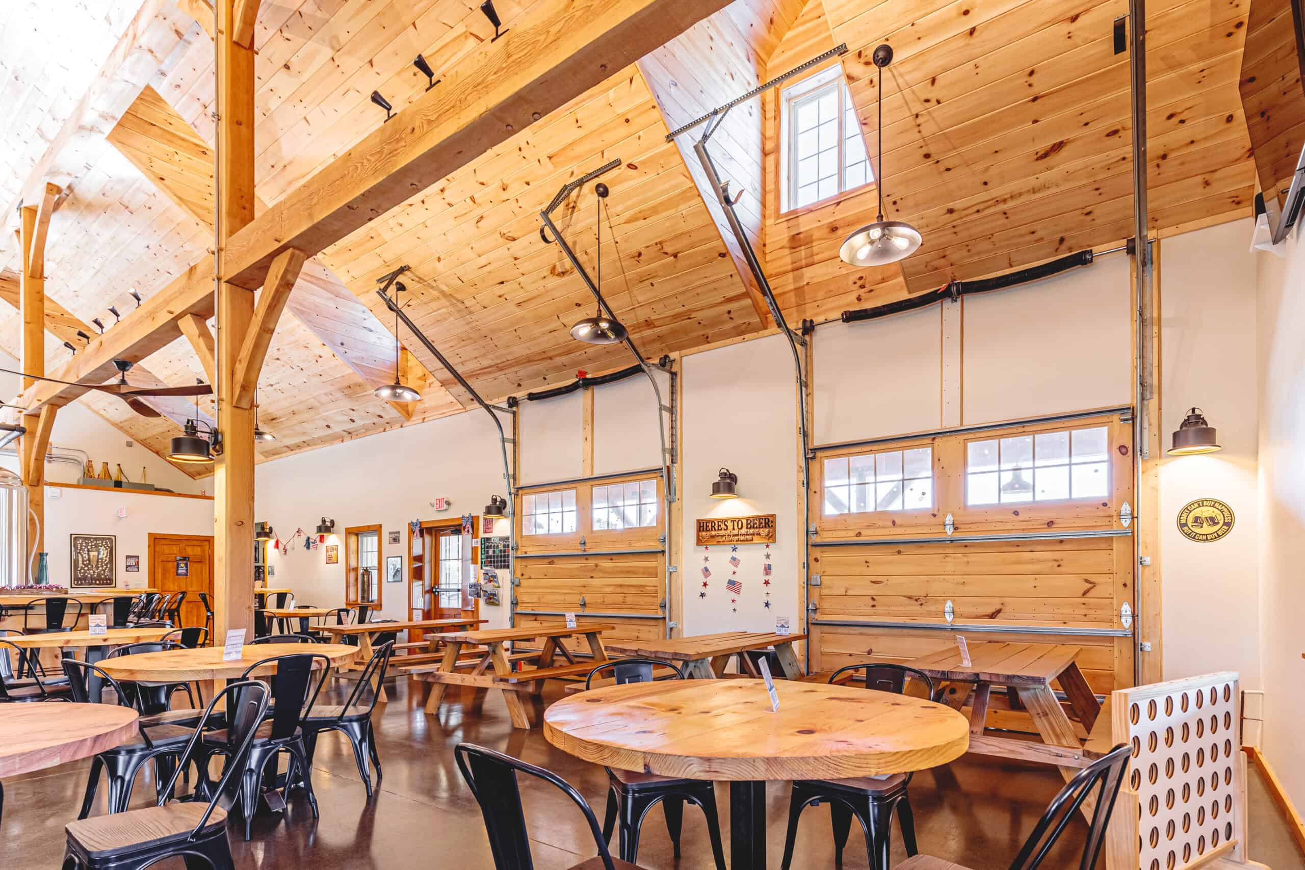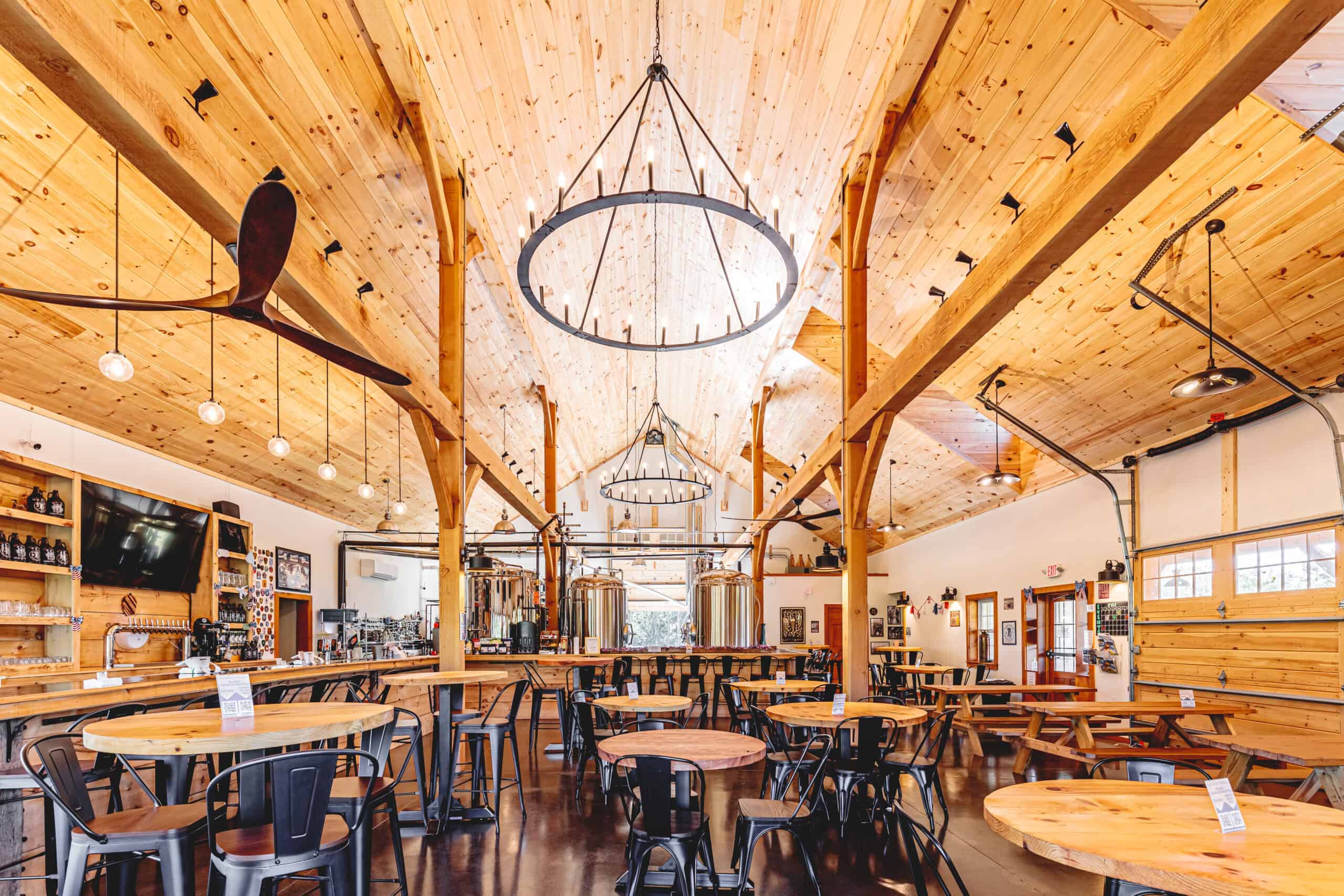 This timber frame brewery captures the attention of every visitor! As guests walk in, they are enamored by the beautiful timber framing, natural materials, and relaxing rustic barn vibes. Learn more about Readington Brewery here: https://readingtonbrewery.com/